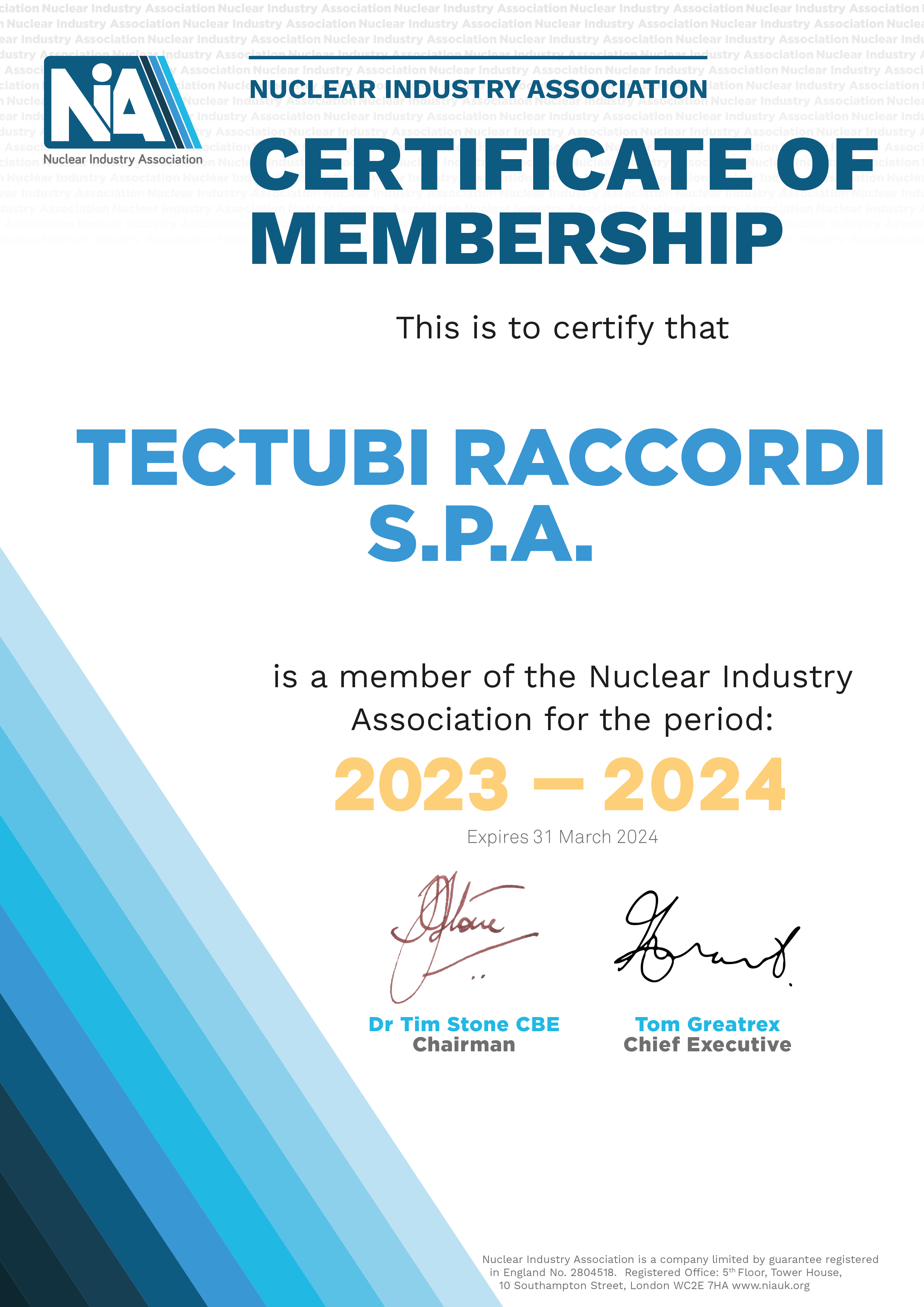Tectubi Raccordi has joined the NIA, the trade association for the UK's civil nuclear industry aimed at supporting the UK’s nuclear sector and maximizing existing and new opportunities.